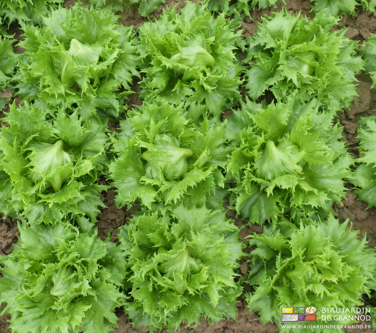 Nous cultivons évidemment de nombreuses variétés adaptées chacune à leur saison. Nous pouvons choisir des variétés relativement récentes, et sommes aussi très attachés à plusieurs salades anciennes particulièrement efficaces dans nos conditions pédo-climatiques. Ces variétés locales ont « leur réputation » notamment grâce à leur goût qui se démarque. Elles apportent aussi des consistances différentes du « standard ».